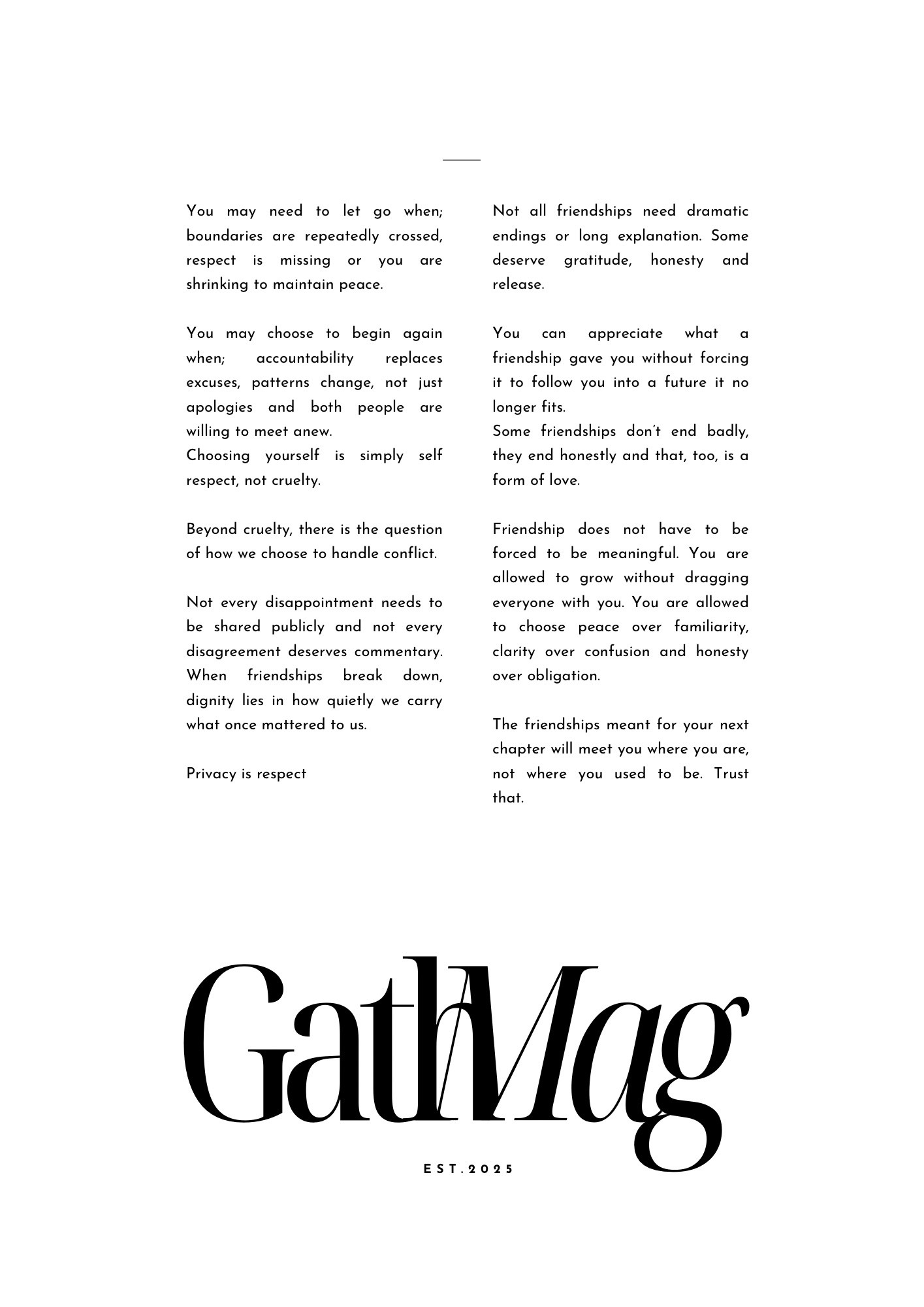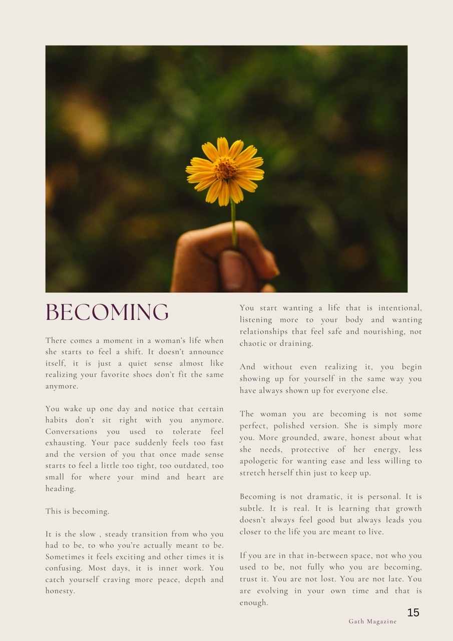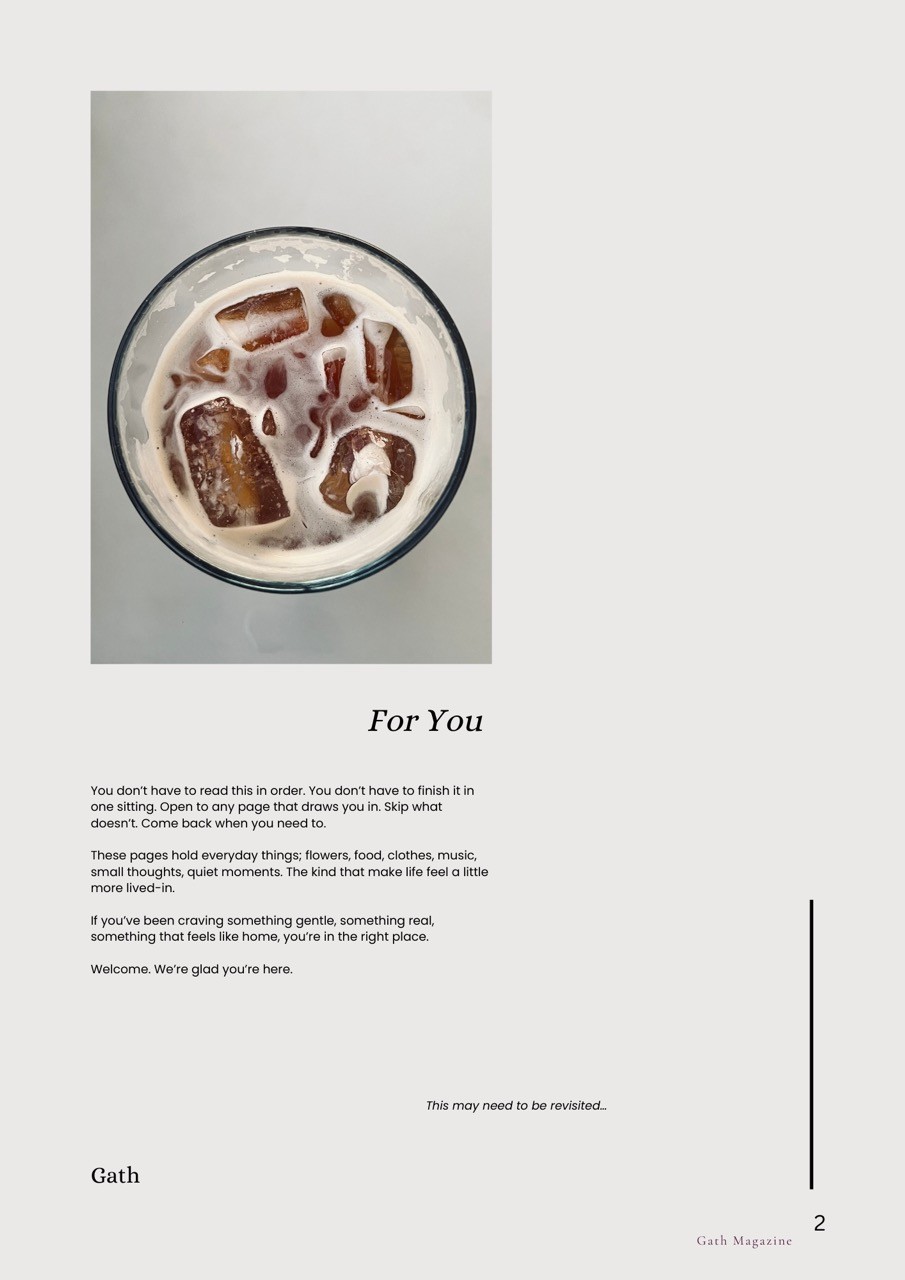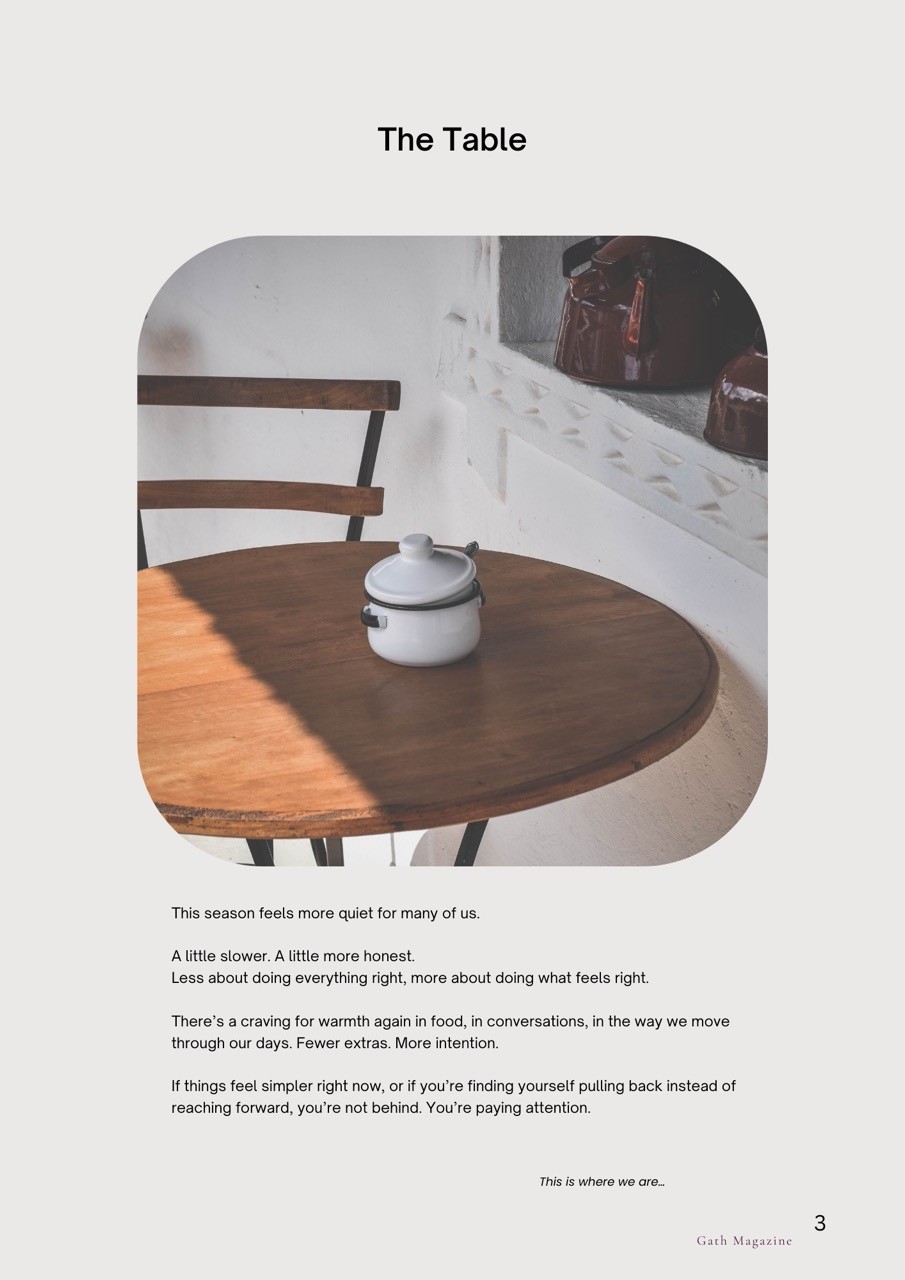 Delivered monthly, each issue of Gath Mag is made to be lingered over; a quiet companion for reflection, inspiration, and becoming.